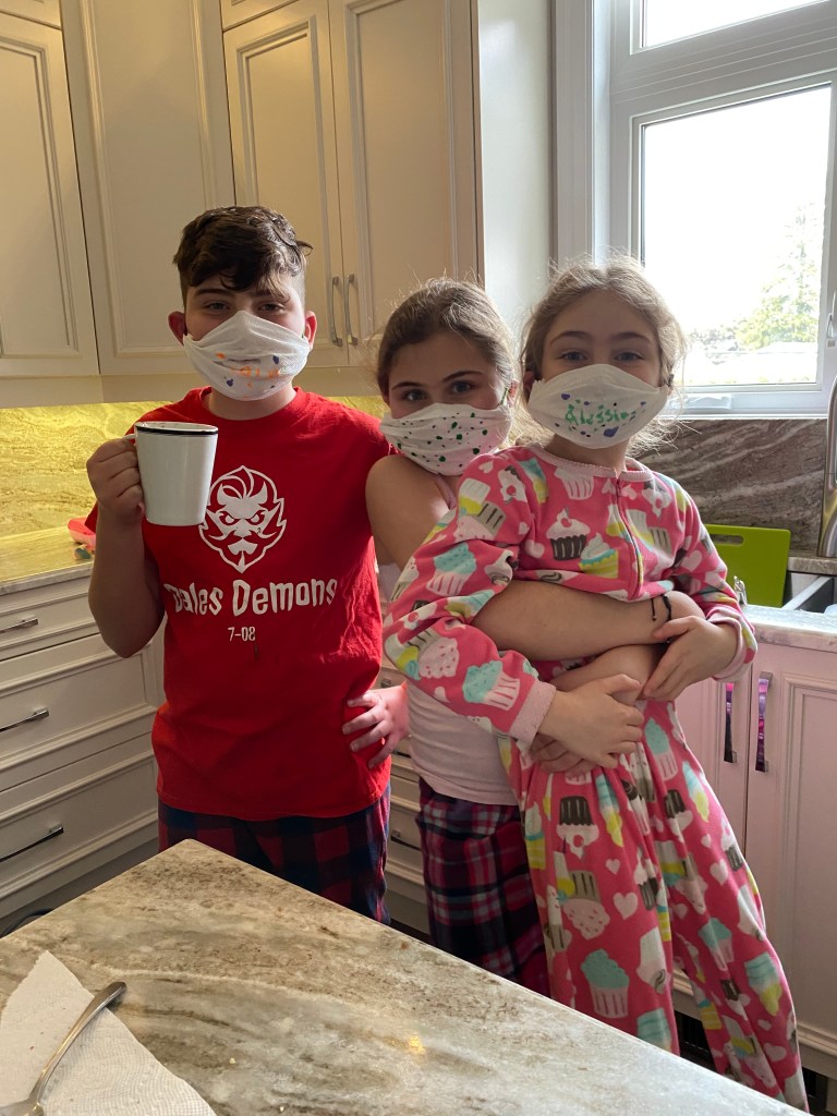 At first, this image made me sad. The kids took it upon themselves to make masks out of paper towels when the pandemic first started.